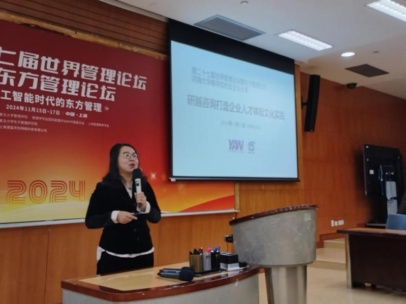 上海研越企业管理咨询有限公司创始人闫静月(1999级人力)结合研越咨询的商业模式,就如何打造企业人才体验文化分享了实践感悟,研越咨询聚焦人才战略、人才赋能和人才体验,提供一站式人才发展解决方案,实现了与客户的双赢发展。