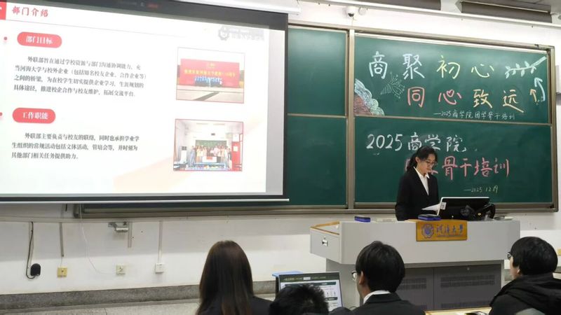 综合部、外联部负责人夏歆迪聚焦生活服务与技能提升,详细讲解了宿舍美化大赛组织流程与评分要求,以及生活权益例会中问题收集的情况,引导骨干积极搭建学院与同学的沟通桥梁。此外,针对PPT设计、推文撰写、活动摄影、PU平台使用等实务难点,提供系统化经验分享,助力骨干实现从“会操作”到“精通善用”的进阶,未来还将推出宿舍文化系列特色活动,致力于让每位同学都成为美好校园生活的共建者。