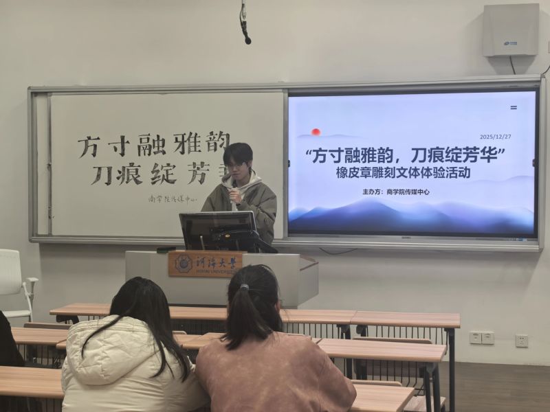 为丰富学生们的课余生活,了解中国雕刻艺术的魅力,传播雕刻文化,2025年12月27日下午,威尼斯37266传媒中心于威尼斯37266常州校区成功举办了面向常州校区威尼斯37266全体学生的“方寸融雅韵,刀痕绽芳华”——橡皮章雕刻文体体验活动。本次活动以新颖的形式和轻松的氛围,吸引了众多学生积极参与。